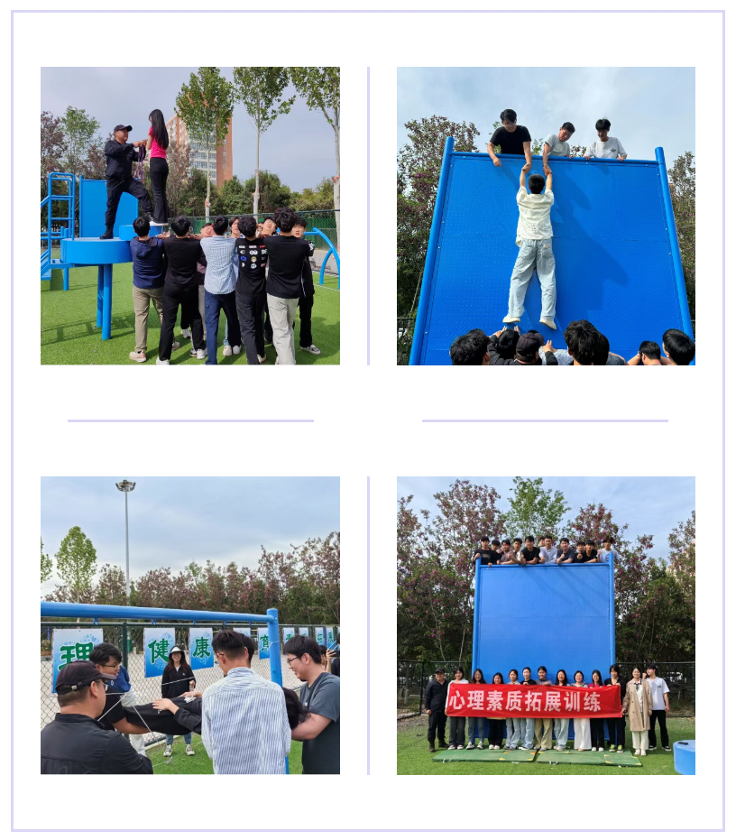揭牌仪式后,国家拓展培训机构认证中级培训师岳向阳带领师生开展“心启航·共成长”素质拓展活动。活动精心设计了多个充满趣味性与挑战性的项目,如穿越电网、信任背摔、毕业墙等。活动中,师生们分组协作,彼此鼓励,为了共同目标全力以赴。活动现场气氛热烈,加油声、欢笑声此起彼伏。