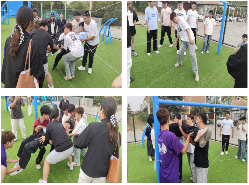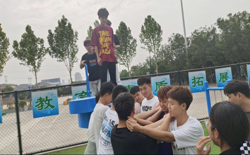 活动伊始,信任背摔项目率先登场。站在高台之上,参与同学需克服内心恐惧,笔直地向后倒下,而下方的队友们则用坚实的臂膀组成“安全网”,稳稳接住。这一项目看似简单,实则对个人勇气和团队信任度有着极高要求。当一位同学成功完成挑战后,他激动地说:“刚开始真的很害怕,但听到队友们响亮的鼓励声,我选择相信他们,那一刻,我感受到了团队的力量。”信任背摔不仅打破了同学间的隔阂,更让大家深刻体会到信任与责任的重要性。