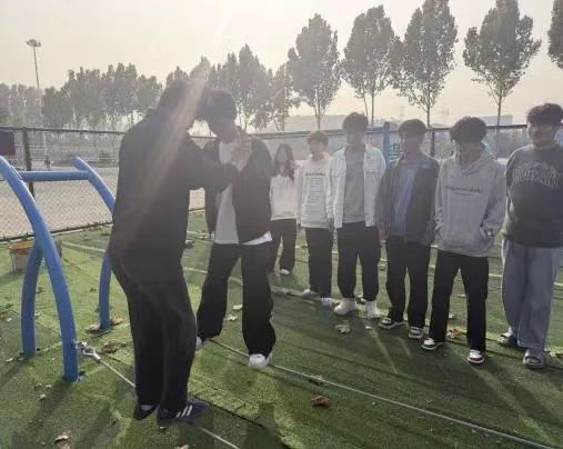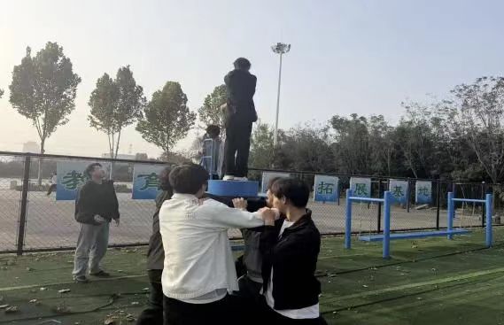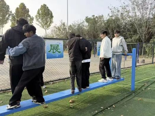 活动伊始,“信任背摔”率先拉开帷幕。同学们依次站上高台,双手交叉抱肩,向后平直倒下,由台下同学搭成的“安全网”稳稳接住。高台之上,是克服恐惧的勇气;高台之下,是坚实可靠的信任。此项目迅速拉近了同学们的距离,为团队协作筑牢根基。
