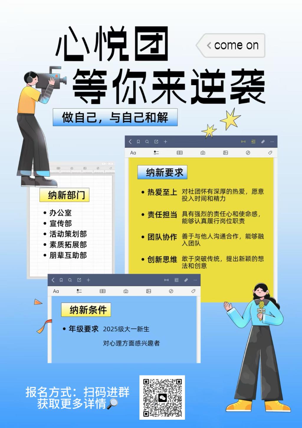 心悦团纳新啦~你的情绪树洞已上线,期待与你共赴心灵之约。