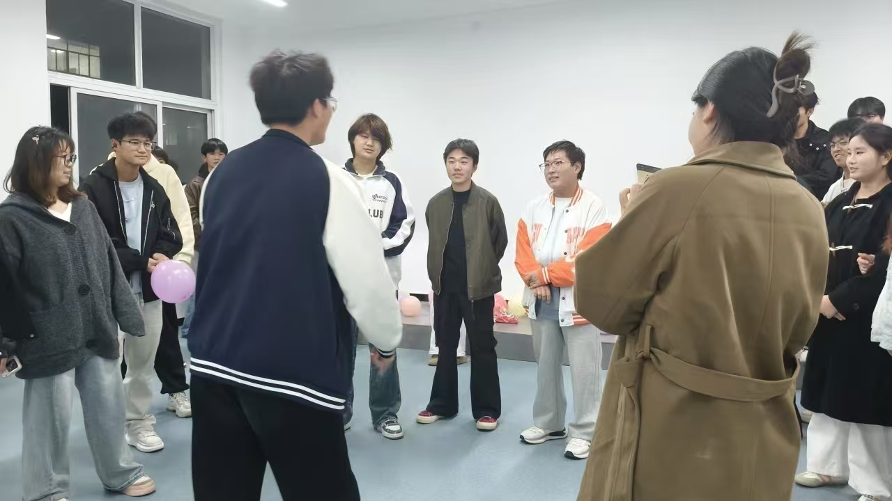 活动前期,心悦团成员提前布置场地、准备道具与奖品,确保活动有序推进。活动共设三大特色环节:首先是双背运气球比赛,先确认参与人数,组织学生两两分组,最终组成15支队伍。比赛中,各组搭档默契配合,用背部平稳运送气球,专人实时计时统计成绩,最终前五组每位成员获得奖励。