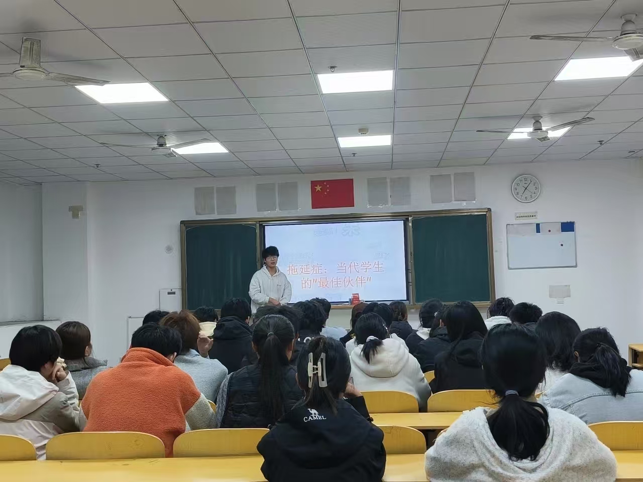 为帮助学生破解拖延困局,提升时间管理能力,2025年11月11日,我校心悦团在高层教学楼503教室推出“高效行动·告别拖延”专题辅导课程,通过理论讲解、互动实践与案例分析相结合的方式,为成员们送上实用的“抗拖延秘籍”。